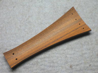 Ein Barocksaitenhalter für Geige aus massivem Palisanderholz gefertigt. Er ist sehr leicht – nur 9,8 Gramm - und zeigt eine überaus feine Struktur, wie sie nur sehr selten zu finden ist. Das Holz ist 50 Jahre alt und "Capuccino"-farbig: Hellbraun mit dunkleren Streifen. Präzise Bohrungen für Saiten und Hängesaiten sorgen für optimale Anwendung auf Ihrer Geige. Der Saitenhalter ist sauber gearbeitet, fein geschliffen und mit Leinöl eingelassen. (Kleine Macke an der Vorderkante).